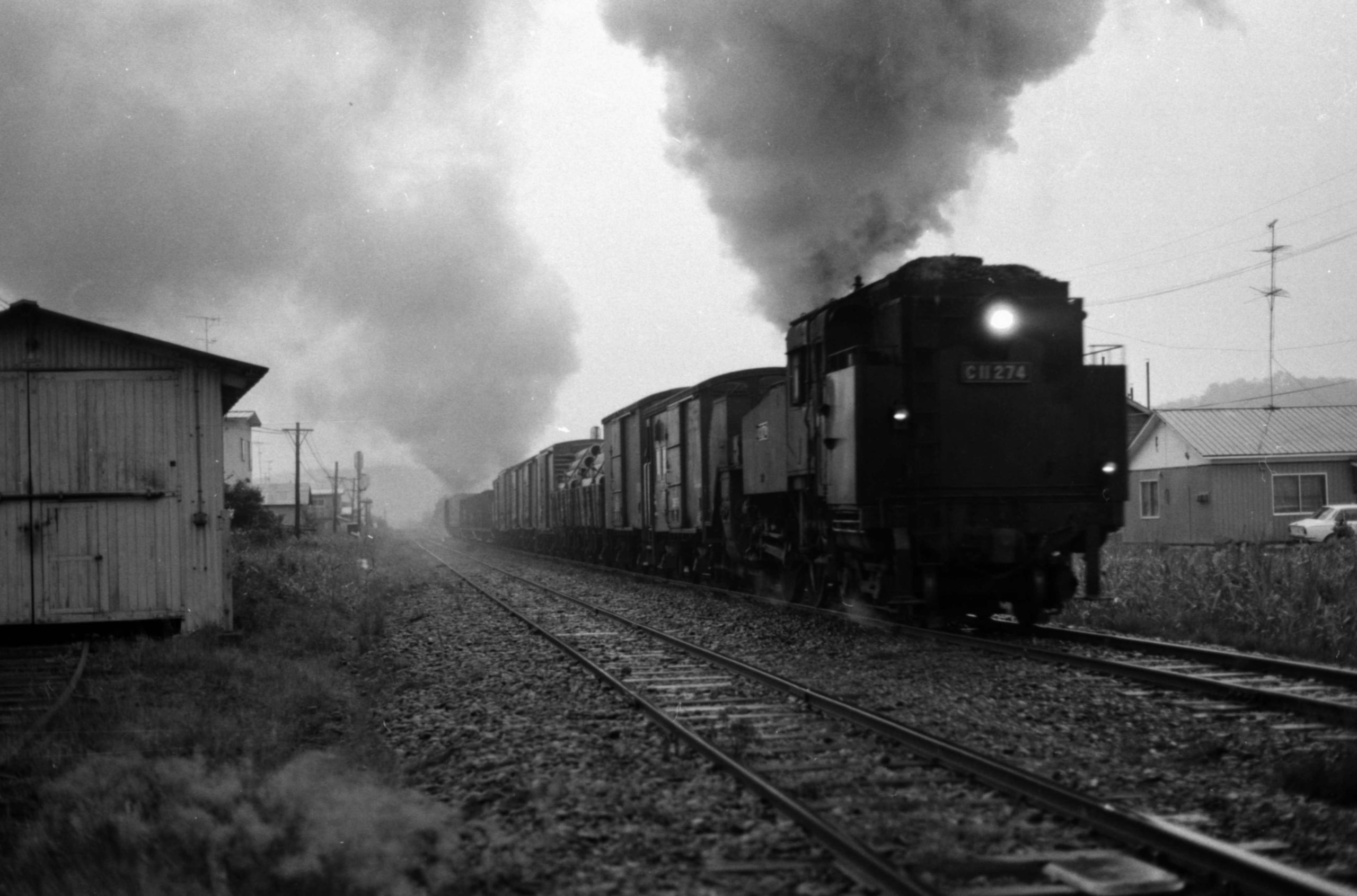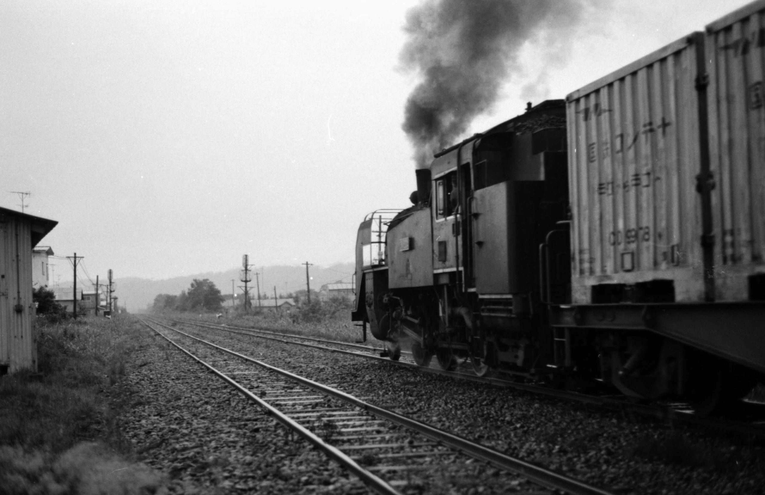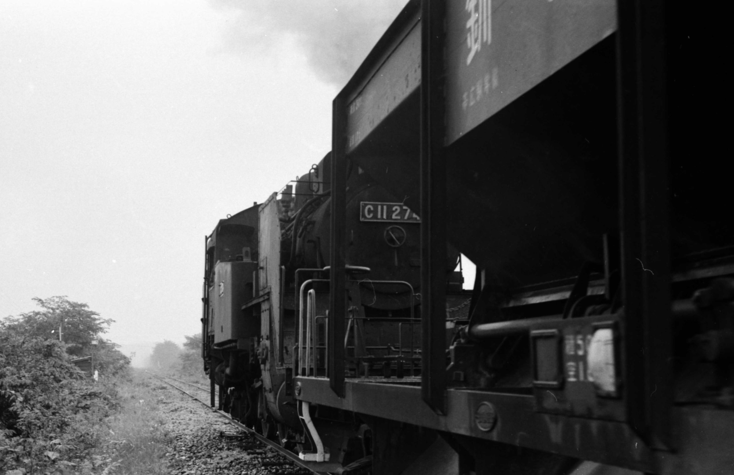 早朝に出発する貨物列車を撮るために4時過ぎに起きて活動開始。夏なのにめちゃめちゃ寒かった。C11が前と後ろについている貨物列車。候補機は回送のためかも知れない。まだうす暗いのでシャッタースピードがあげられなかった。